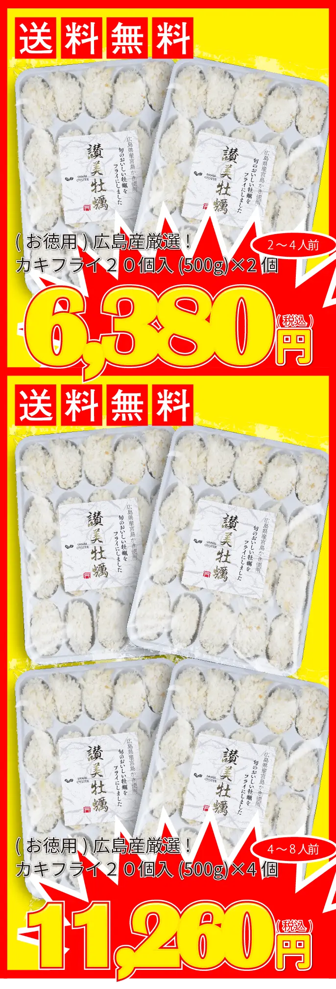 送料無料!!(北海道・沖縄は2000円) 旬の時期の100%広島産大粒かきにサクサクの衣をつけました。